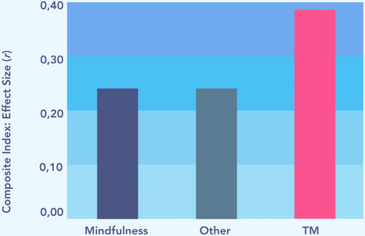 Studies show that TM reduces anxiety, negative emotions and neuroticism, more than mindfulness and other types of meditation.